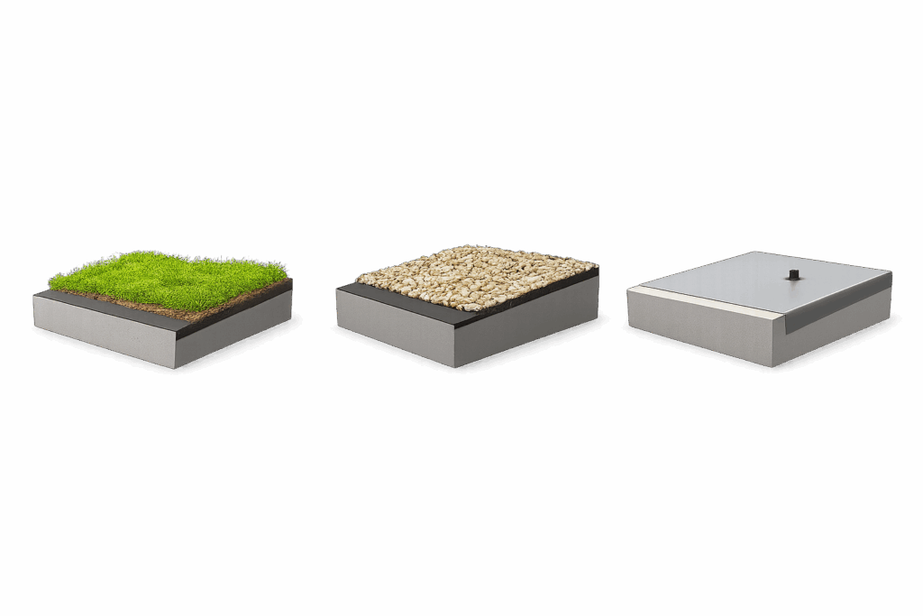 - Kunststoff- oder Bitumenabdichtungen für klassische Flachdächer